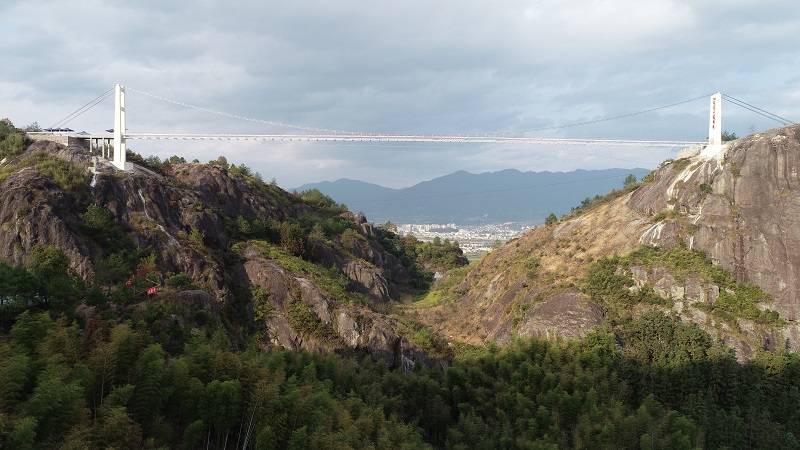 2、项目规模:连接2座山顶上的桥梁,玻璃栈桥,全长220m