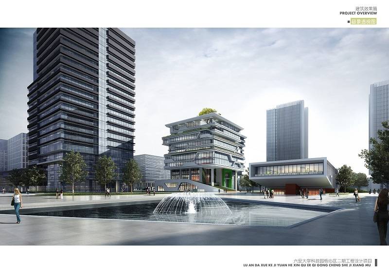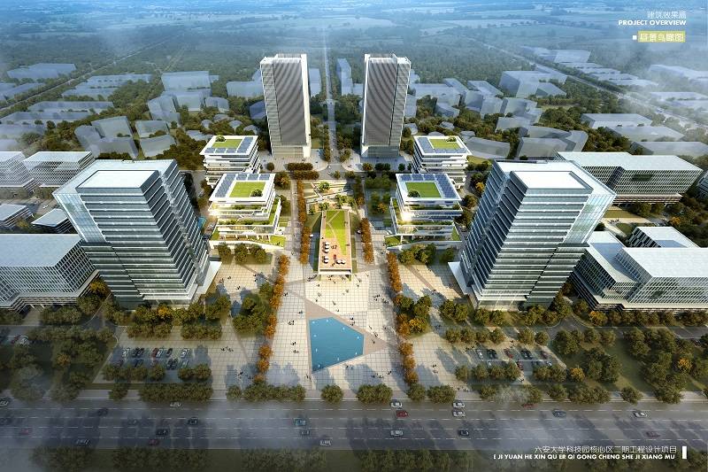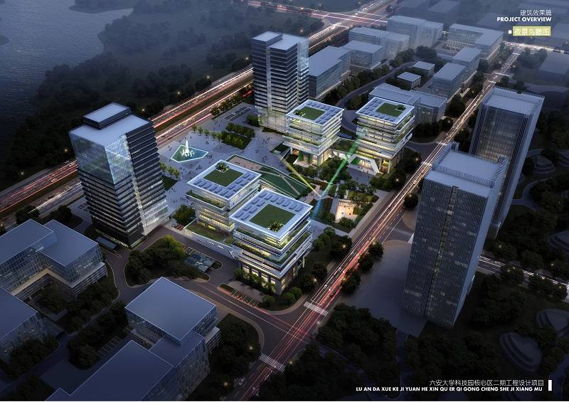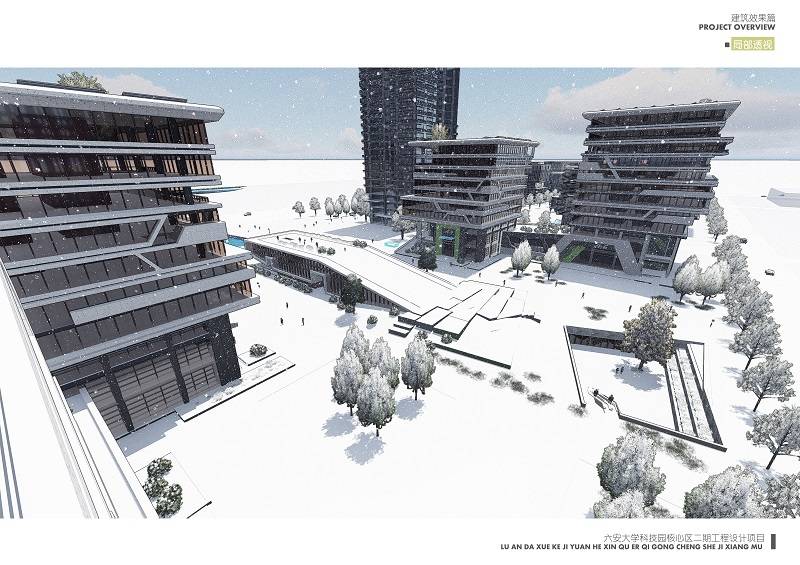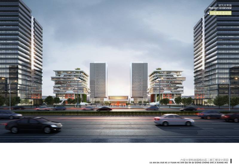 4、项目简介:2019年安徽省土木建筑学会第三届创新奖(建筑)公建三等奖、该项目地上建筑面积约4.9万平方米,共四栋建筑。2栋10F,A-4、A-5为高层办公楼,建筑高度40米。2栋12F,A-6、A-7为人才公寓,建筑高度60米,地下建筑面积约1.5万平方米。