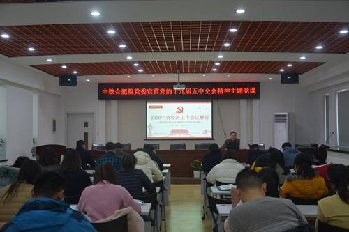 王智忠书记首先开讲,他以党的十九届五中全会精神为授课主题,从规划《建议》的起草、亮点、突出民生议题和双循环的新发展格局、如何实现2035年远景目标等五个方面深入系统地解读了十九届五中全会精神内核,立意高远、深入浅出。他强调,学习宣传好、贯彻落实好党的十九届五中全会精神,是当前和今后一段时期的首要政治任务,要严格按照上级党委要求和院党委刚刚下发的《中铁合肥院党委关于学习宣传贯彻党的十九届五中全会精神的通知》部署,迅速在全院范围内掀起学习宣贯热潮。同时,要统筹做好当前各项重点工作,以学习宣贯党的十九届五中全会精神为动力,振奋精神,鼓足干劲,精准发力,全力冲刺,完成好全年各项任务,确保“十三五”圆满收官,为“十四五”开好局、起好步奠定坚实基础。